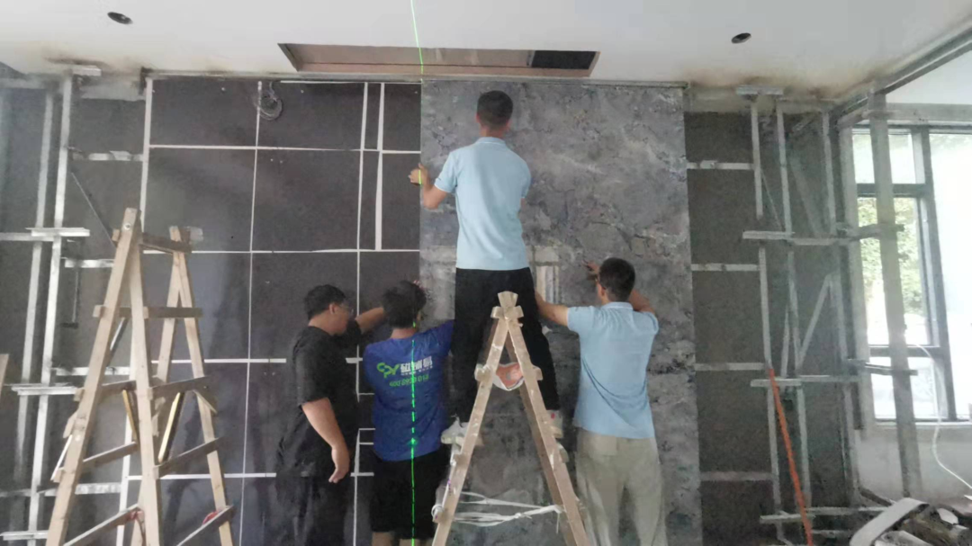 像拼圖游戲一樣作業(yè) ,一人一天鋪裝六十平方以上。傳統(tǒng)的鋪裝手法有干掛,濕鋪(分水泥黃砂類和瓷磚膠類),點貼等施工速度較慢,人工多,勞動強度大,與之相比,磁鋪效率高3-5倍。