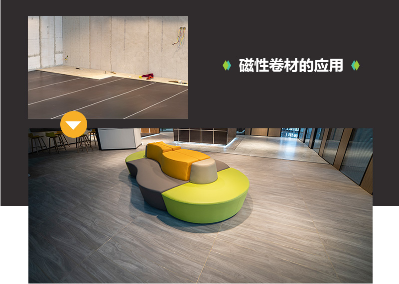 磁性基層是高分子材料和永磁材料粉末的復(fù)合物。有卷材和片材,卷材應(yīng)用在鋪設(shè)地面基層,片材應(yīng)用在鋪設(shè)墻面基層。